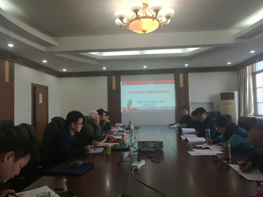 论证会由李斌院长主持,副院长白宁芳及学院申报2017年国家基金项目的7位教师参加了论证会。