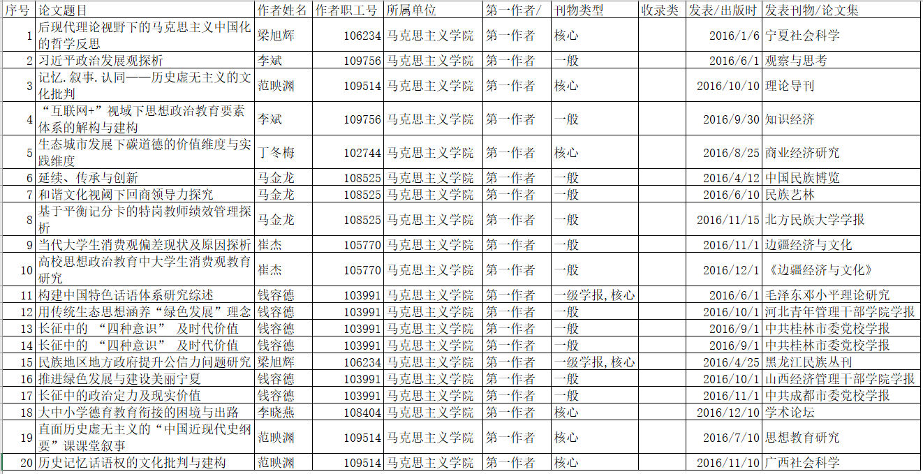 威廉希尔2016年度科研成果【学术论文】统计表(社科类)