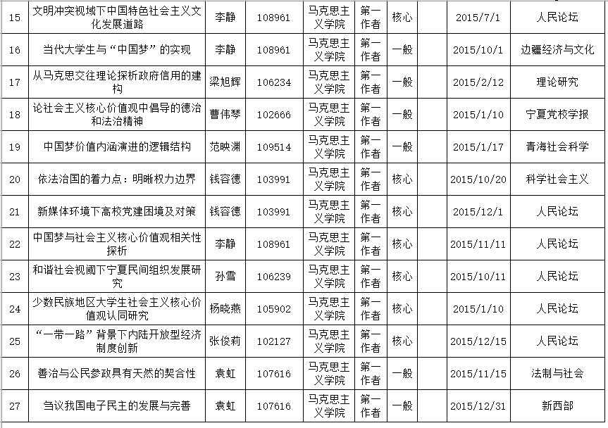威廉希尔2015年度科研成果【学术论文】统计表(社科类) 2