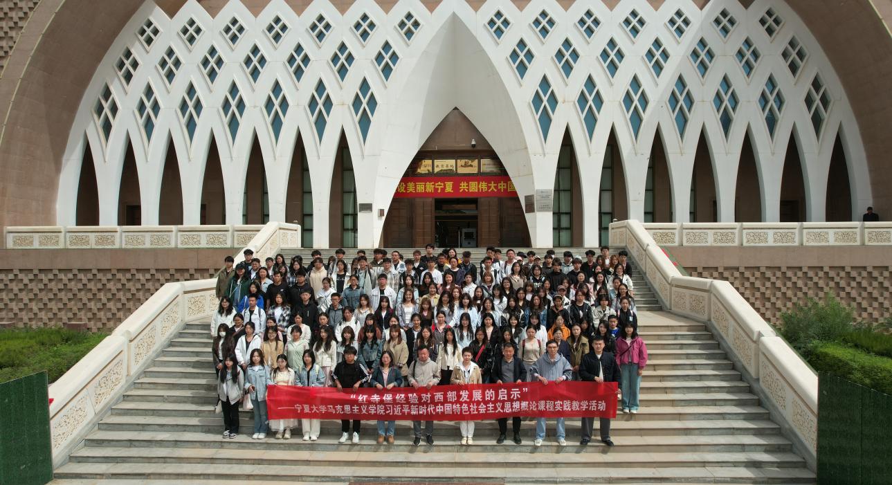 2025年5月7日,威廉希尔《习近平新时代中国特色社会主义思想概论》教研室全体教师及2023级学生代表,齐聚宁夏移民博物馆,开展主题实践教学活动,以沉浸式社会实践深化思政课程教学,推动党的创新理论入脑入心。