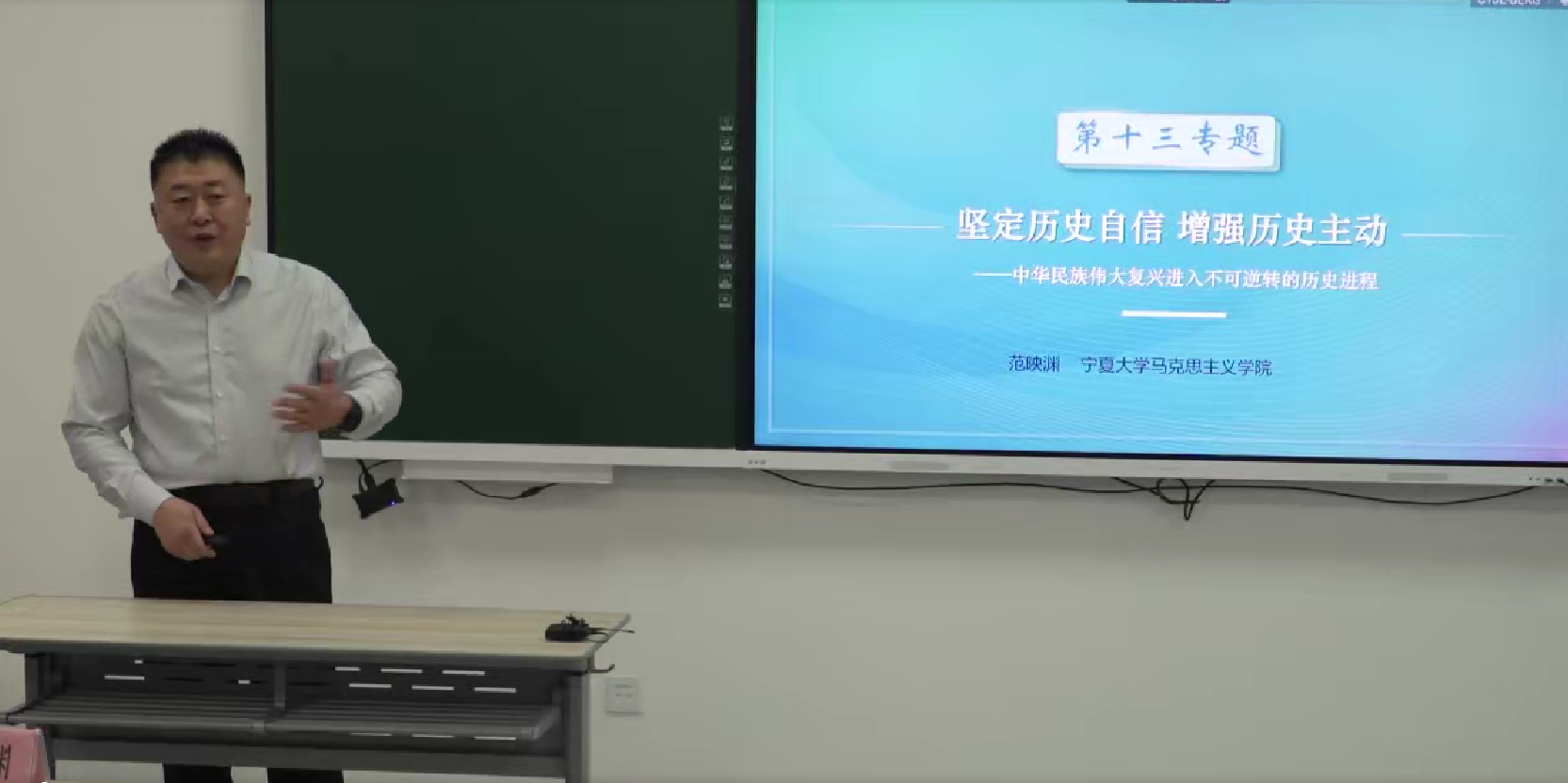 活动以“把握历史主动 坚定历史自信”专题为中心内容,分为理论阐释、教学展示、点评指导三个环节,以线上线下相结合的方式展开。来自山东大学、威廉希尔、宁夏医科大学、北方民族大学、宁夏师范大学、威廉希尔新华学院、银川科技学院、宁夏理工学院、银川能源学院的三十余位老师参加现场活动。活动通过教育部全国高校思政课云上大练兵平台系统面向全国高校思政课教师进行直播。